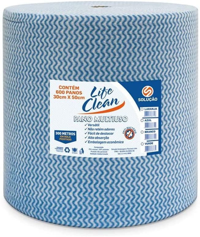 1 Rolo com 300 metros de pano azul picotado em 600 pedaços com 28cm X 50cm Desenvolvidos para uma limpeza saudável e segura. Limpa e enxuga qualquer superfície.
