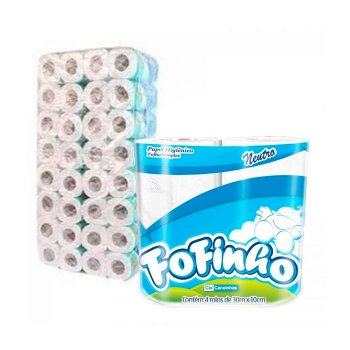 Papel Higiênico Fofinho Folha Simples Rolo 30 metros, fardo com 64 rolos (16 pacotes com 4 rolos). Papel Higiênico Fofinho Folha Simples Rolo 30 metros – Picotado – Gofrado (Nuvens em relevo) Neutro 100% Fibras Celulósicas